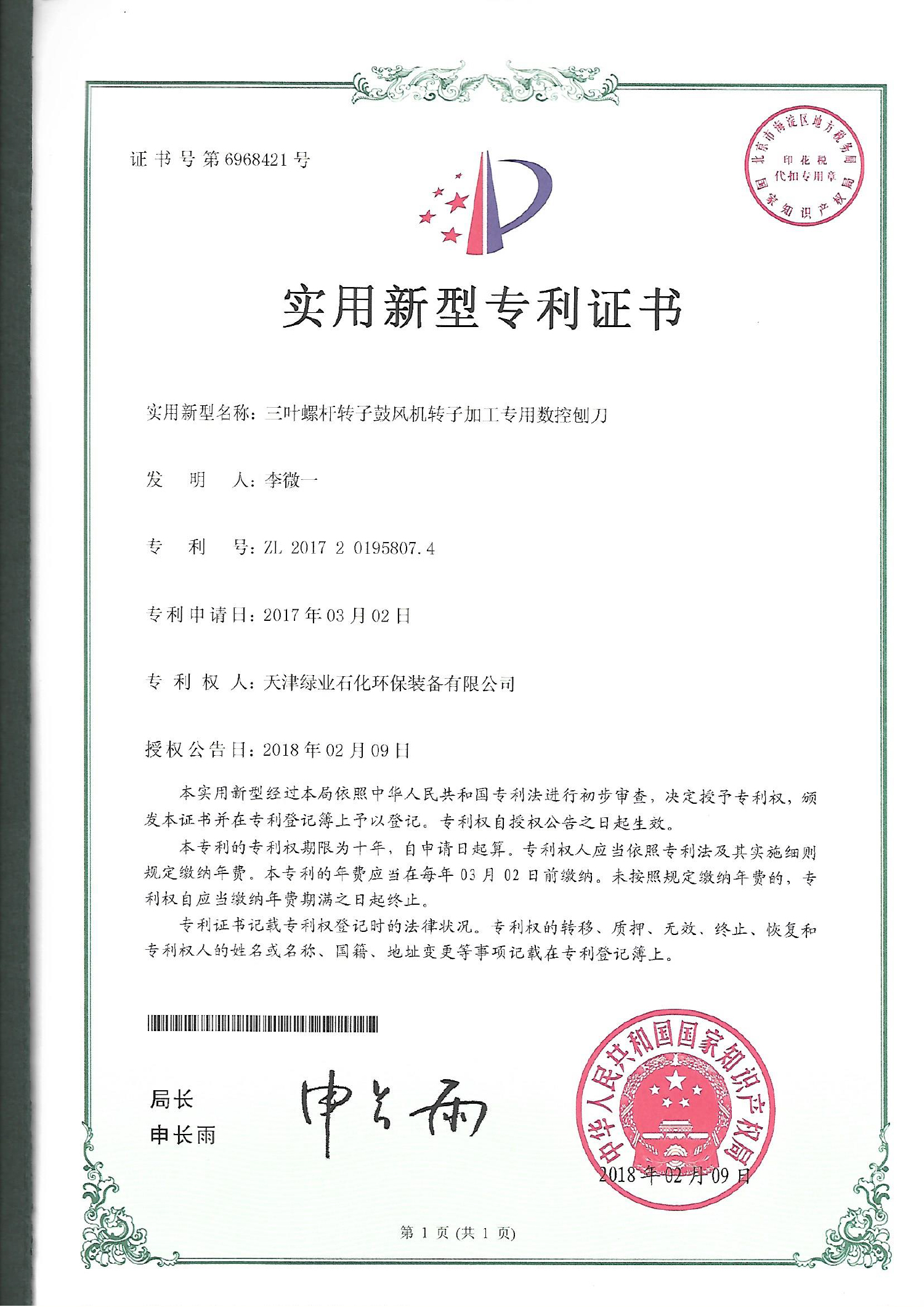 Patent: Special CNC planing Tool for Processing Screw rotors of Three-leaf screw rotor blowers